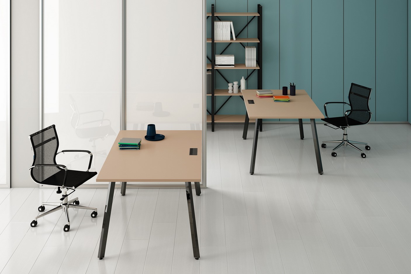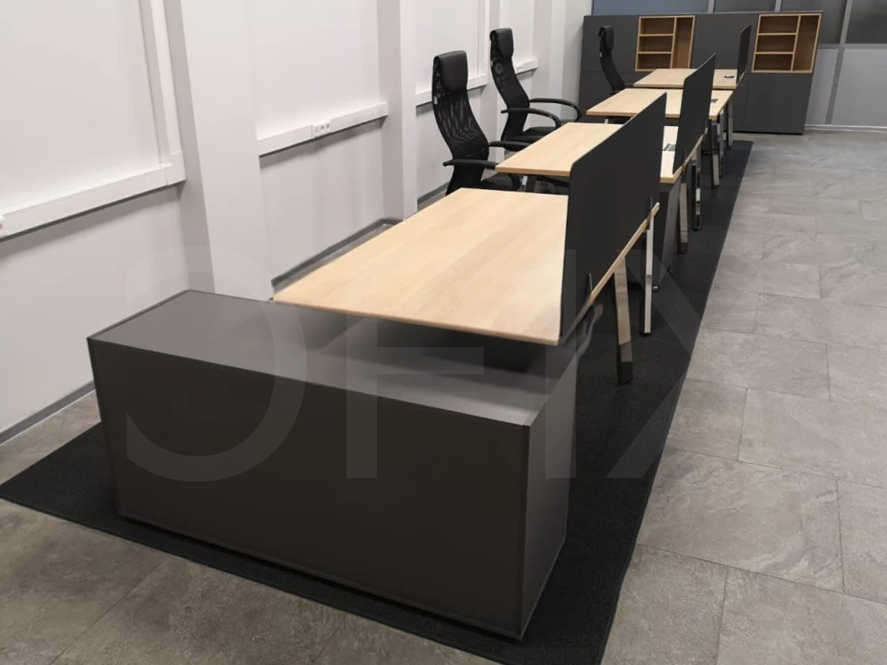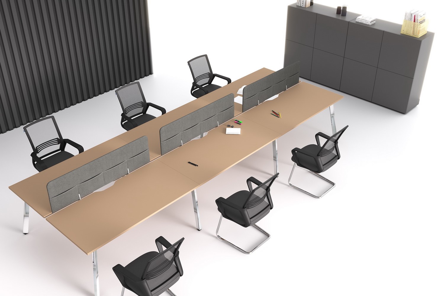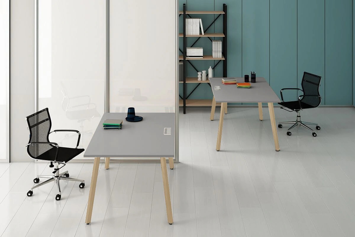 - Металлокаркас (опоры столов): Подстолье с прямоугольной ножкой, 60х30мм, уникальная геометрия опоры (3D-эффект).