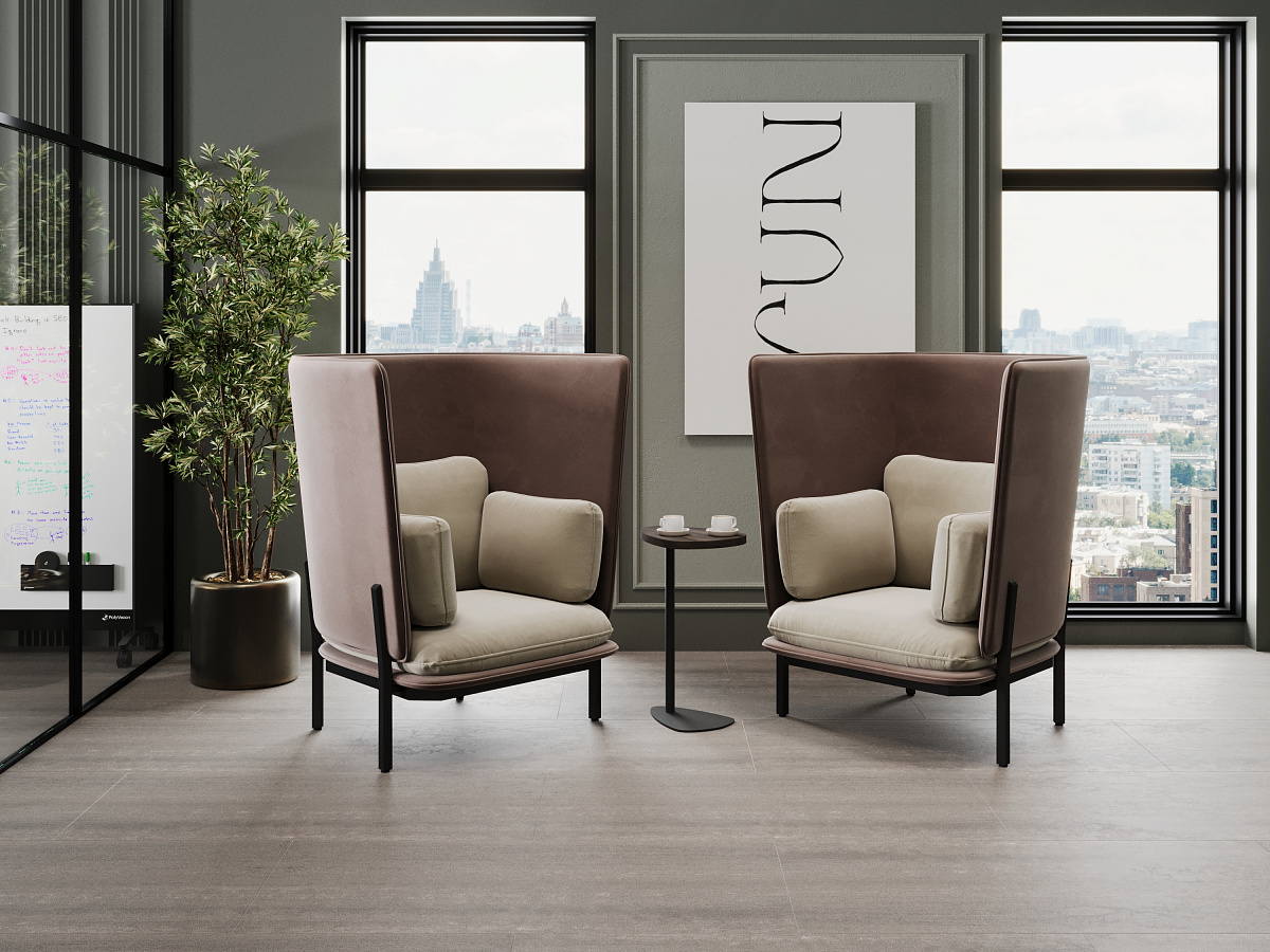 В серии представлены модели с высокой спинкой для максимальной приватности и защиты от шума, а также варианты с низкой спинкой для более открытого пространства. Это идеальное решение не только для современных опенспейсов, но и для классических переговорных комнат.