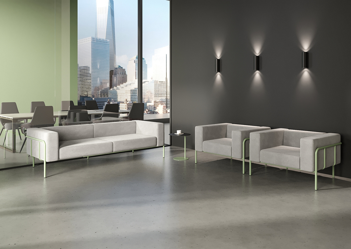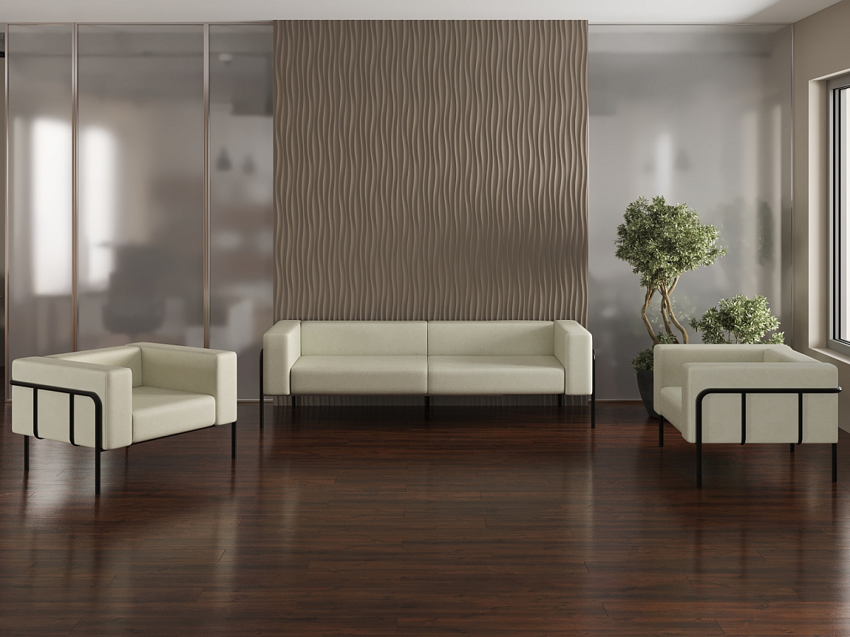 Флекс отличается четкими линиями металлических опор, строгими формами спинки и сиденья и очень комфортной глубиной посадкой. Флекс создает ощущение надежности, основательности и самодостаточности. Уютные мягкие  диваны расположат клиента к общению и сформируют желание вернуться к вам снова.  Они способны стать визитной карточкой вашего офиса, обеспечат удобство и комфорт вашим гостям, сделают помещение стильным, современным, но при этом уютным и гостеприимным.