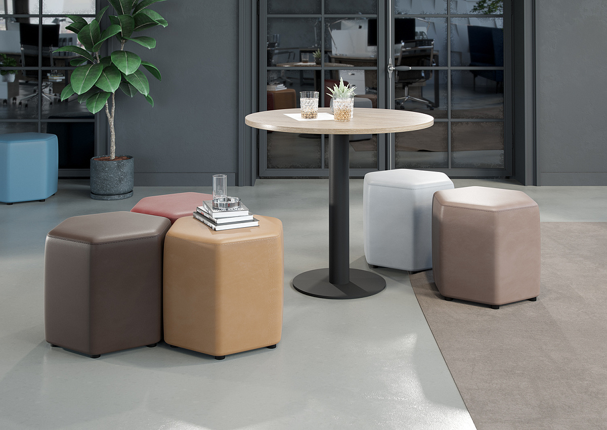 Преобразите ваше пространство с яркими и стильными пуфами Vermont! Они помогут вам быстро адаптировать обстановку под ваши нужды и создать свою неповторимую атмосферу. Количество возможных вариантов расстановки ограничивается только вашей фантазией. Вы сможете легко создать подходящую комбинацию для переговоров, летучек или зоны отдыха.