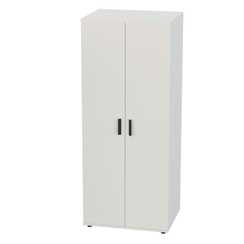 Глубокий вместительный гардероб с деревянными дверцами станет практичным решением для организации хранения в офисе. Внутреннее пространство оборудовано верхней и нижней полками, а также рейлом во всю ширину шкафа для вешалок — всё необходимое для размещения верхней одежды, униформы и личных вещей сотрудников.