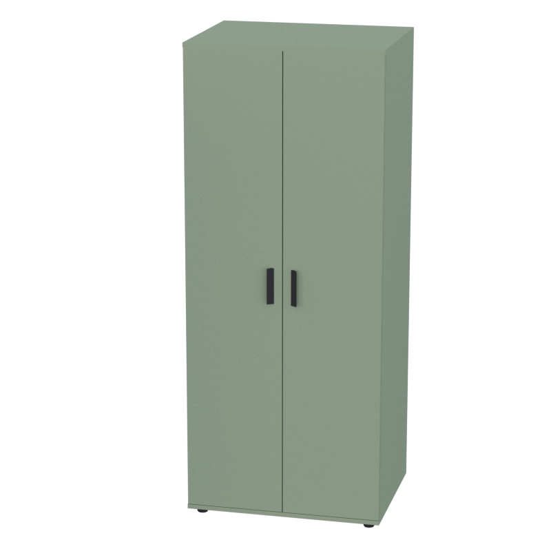 Глубокий вместительный гардероб с деревянными дверцами станет практичным решением для организации хранения в офисе. Внутреннее пространство оборудовано верхней и нижней полками, а также рейлом во всю ширину шкафа для вешалок — всё необходимое для размещения верхней одежды, униформы и личных вещей сотрудников.