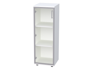 Стеклянная дверца в металлической раме создает стильный современный облик, сохраняя практичность. Внутренние полки из прочного ДСП легко вместят документы, канцелярские принадлежности или образцы продукции, поддерживая идеальный порядок.