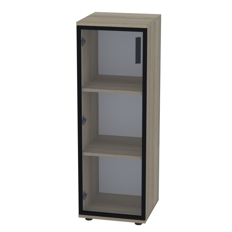 Стеклянная дверца в металлической раме создает стильный современный облик, сохраняя практичность. Внутренние полки из прочного ДСП легко вместят документы, канцелярские принадлежности или образцы продукции, поддерживая идеальный порядок.