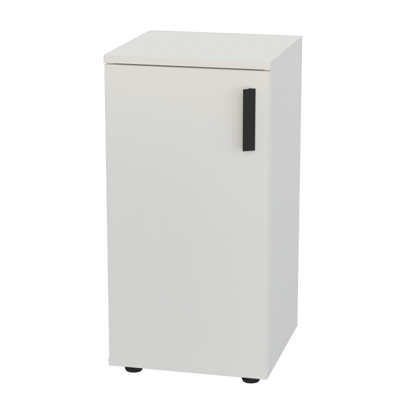Глухая дверца надежно скрывает содержимое от посторонних глаз, поддерживая строгий деловой вид. Конструкция из прочного ДСП 18 мм с кромкой ПВХ 1 мм обеспечивает устойчивость и долговечность при активной эксплуатации. Внутренние полки готовы вместить документы, канцелярские принадлежности и рабочие материалы.