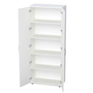 Высокий шкаф с дверцами из ДСП создает универсальное решение для систем хранения в офисе. Полки за глухими фасадами позволяют организовать хранение документов, архивов, канцелярских принадлежностей и других рабочих материалов, скрывая содержимое и поддерживая аккуратный вид помещения.
