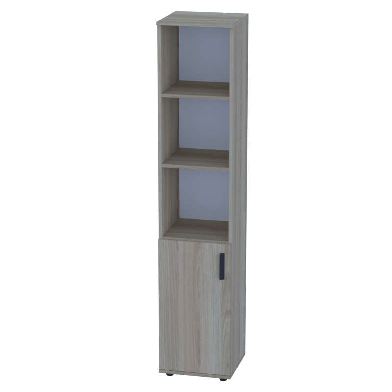 Пенал с глухой дверью внизу и открытыми верхними полками создает сбалансированное решение для офисного хранения. Нижняя секция надежно скрывает содержимое, а открытые полки в верхней части обеспечивают легкий доступ к часто используемым предметам.
