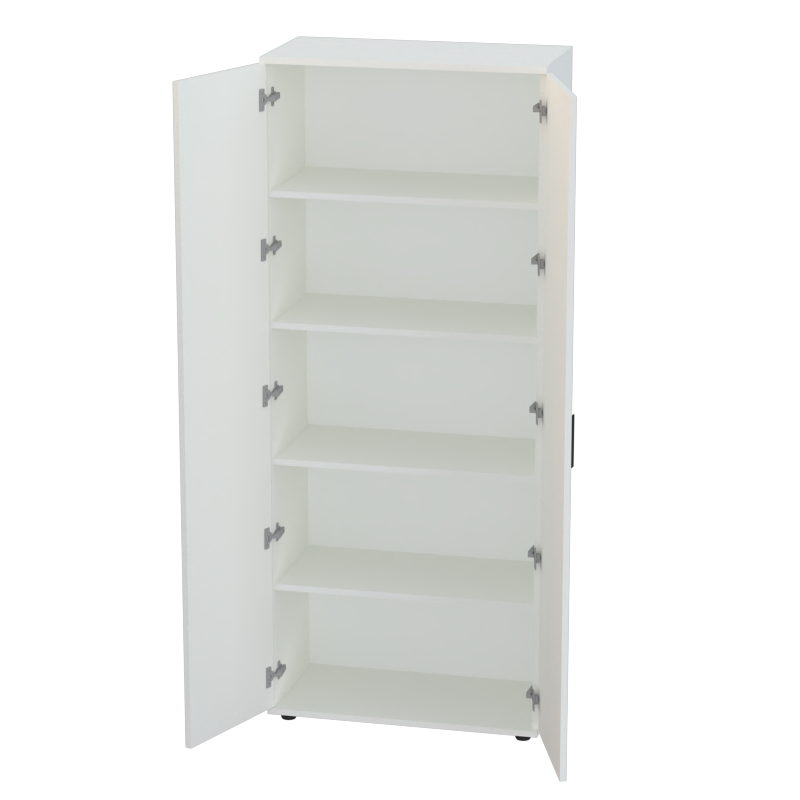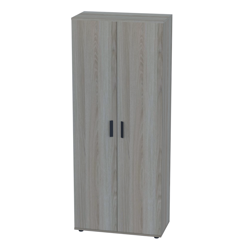 Высокий шкаф с дверцами из ДСП создает универсальное решение для систем хранения в офисе. Полки за глухими фасадами позволяют организовать хранение документов, архивов, канцелярских принадлежностей и других рабочих материалов, скрывая содержимое и поддерживая аккуратный вид помещения.