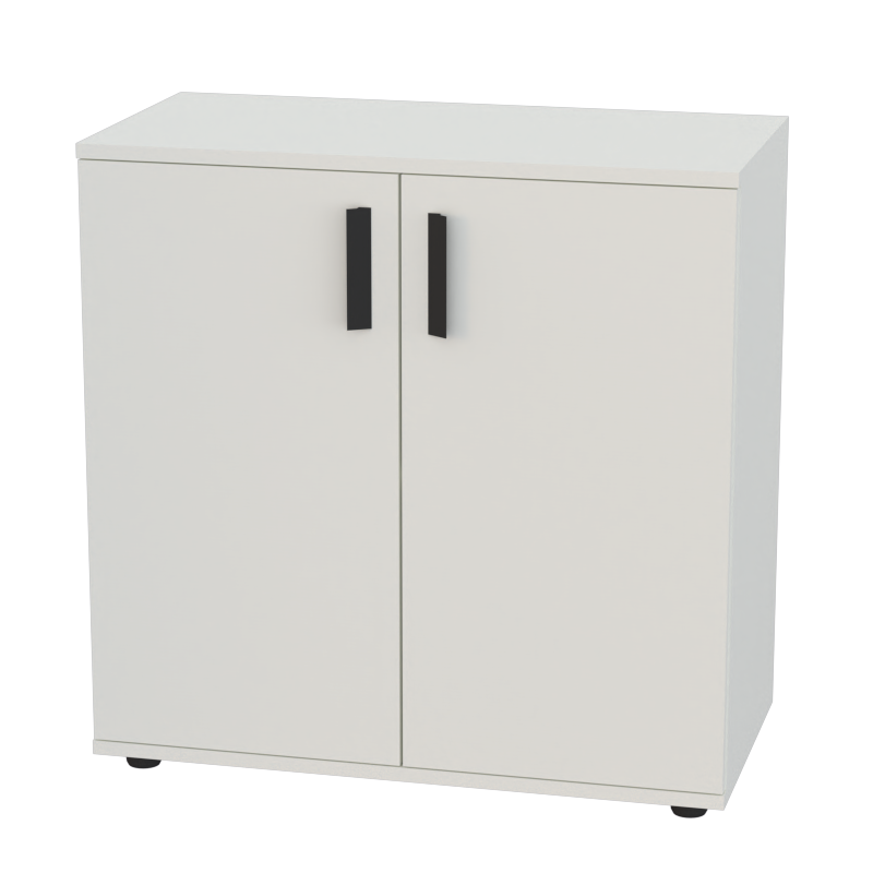 Небольшой шкаф с глухими малыми дверцами создает аккуратное и организованное пространство для хранения в офисе. При ширине 800 мм и глубине 400 мм модель оптимально использует площадь, сохраняя все преимущества закрытых систем хранения. При этом за счет небольшой высоты шкаф предлагает дополнительную рабочую поверхность сверху.