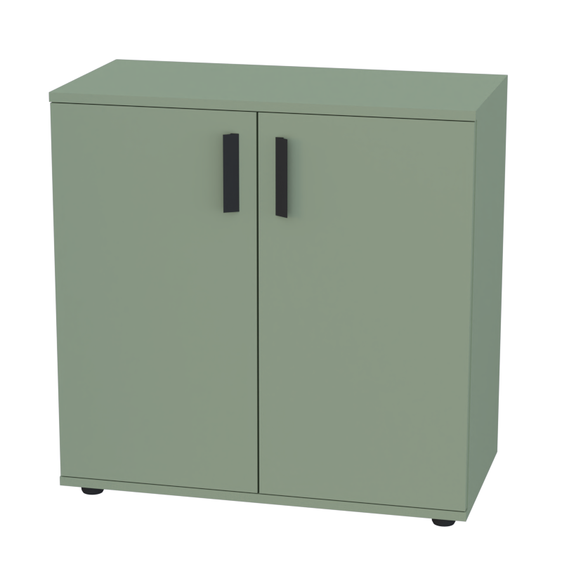 Небольшой шкаф с глухими малыми дверцами создает аккуратное и организованное пространство для хранения в офисе. При ширине 800 мм и глубине 400 мм модель оптимально использует площадь, сохраняя все преимущества закрытых систем хранения. При этом за счет небольшой высоты шкаф предлагает дополнительную рабочую поверхность сверху.