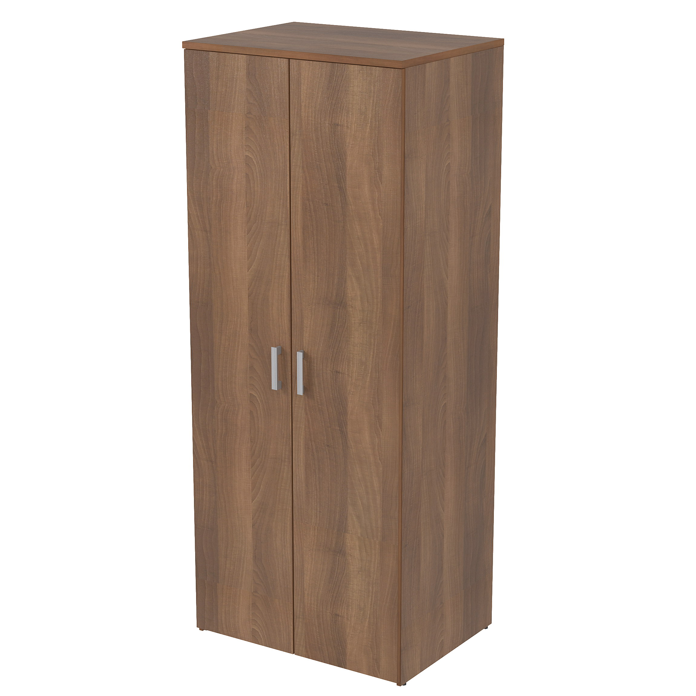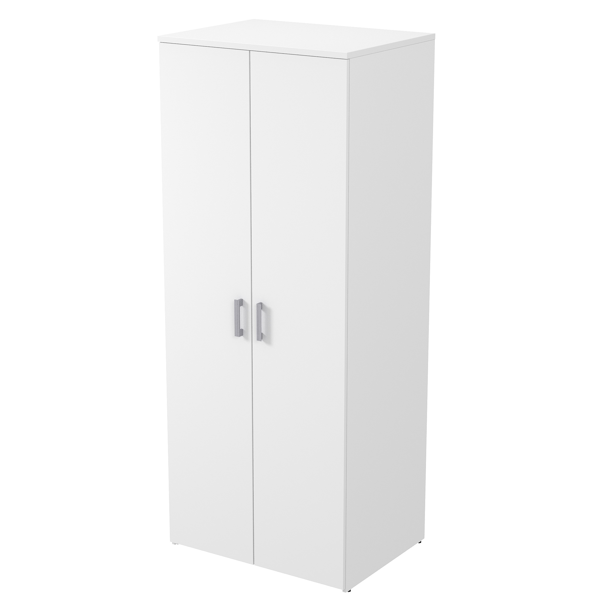Шкаф изготовлен из качественного ЛДСП с надежной кромкой PVC, что обеспечивает его долговечность и устойчивость к повседневным нагрузкам. Монолитные деревянные фасады эффективно скрывают содержимое, поддерживая атмосферу порядка. Увеличенная глубина делает модель особенно удобной для использования в прихожей или гардеробной зоне офиса.