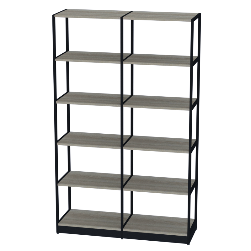 Высокий стеллаж на металлокаркасе с полками из ЛДСП и цоколем в нижней части создает многофункциональную систему хранения для офиса. Шесть полок обеспечивают пространство для документов, папок, канцелярских принадлежностей и других рабочих материалов, позволяя организовать пространство с максимальной эффективностью.