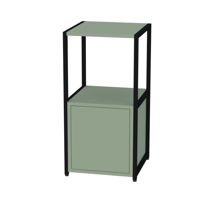 Стеллаж металлический компактный с фасадом и системой открывания нажатием создает эргономичное решение для малогабаритных офисных пространств. Верхняя открытая полка предназначена для часто используемых предметов, а нижний шкафчик со скрытым механизмом открывания надежно хранит документы и ценные вещи.