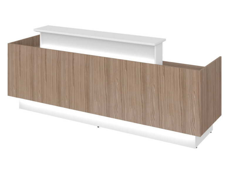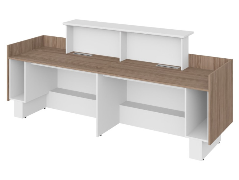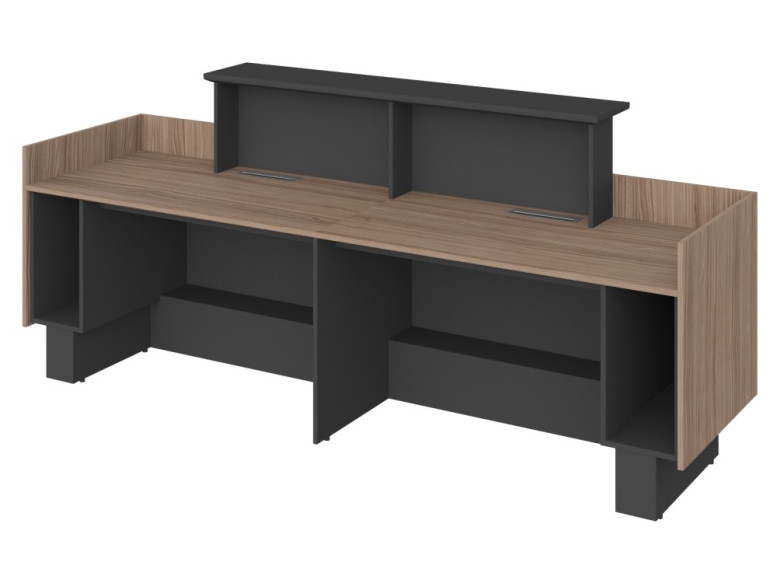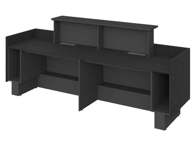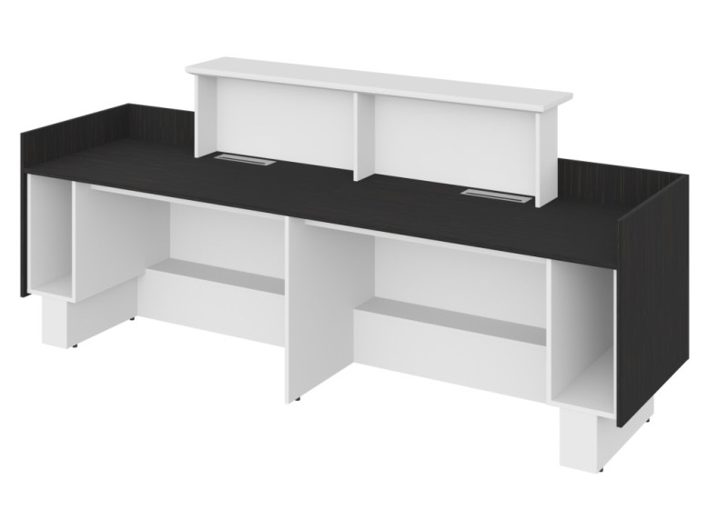 Прямая двухместная стойка ресепшн Platinum — профессиональное решение для организации двух рабочих мест, объединенных в единую гармоничную композицию. Модель отличается протяженной линией столешницы, создающей впечатляющий и представительный фронт-офис.