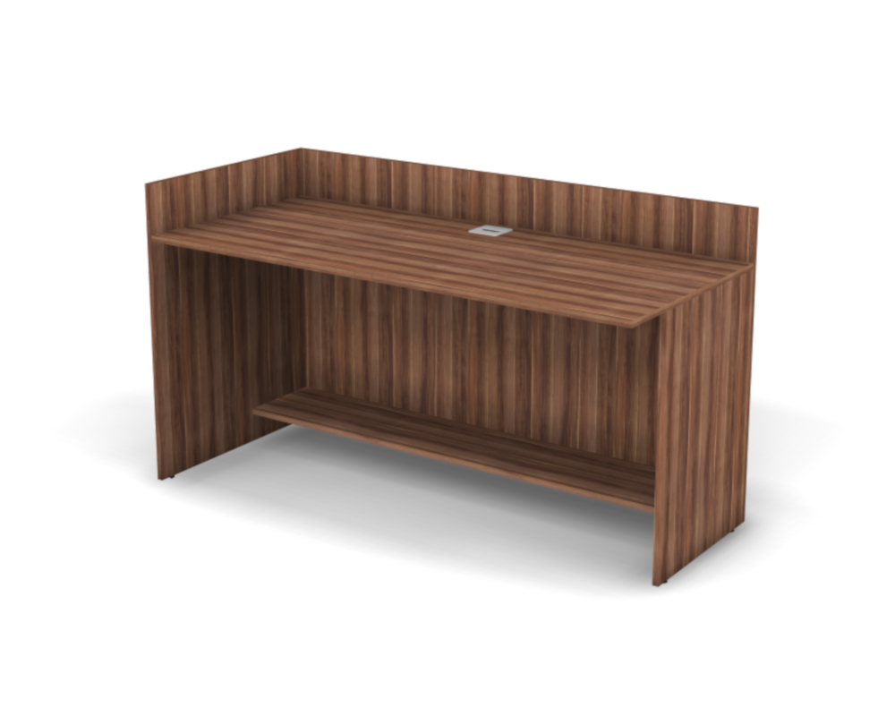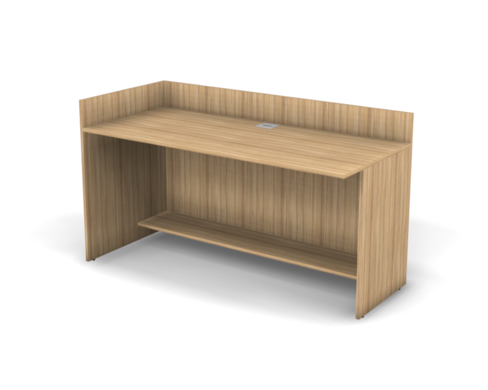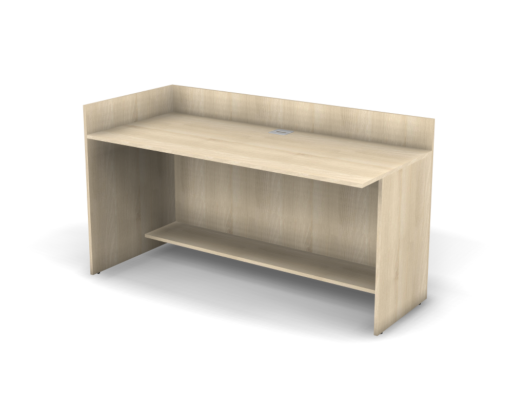 Конструкция из прочного ДСП толщиной 18 мм с противоударной кромкой ABS гарантирует долговечность эксплуатации. Стол гармонично интегрируется в общую композицию ресепшн-зоны, предоставляя дополнительную поверхность для работы с документами или размещения оборудования.