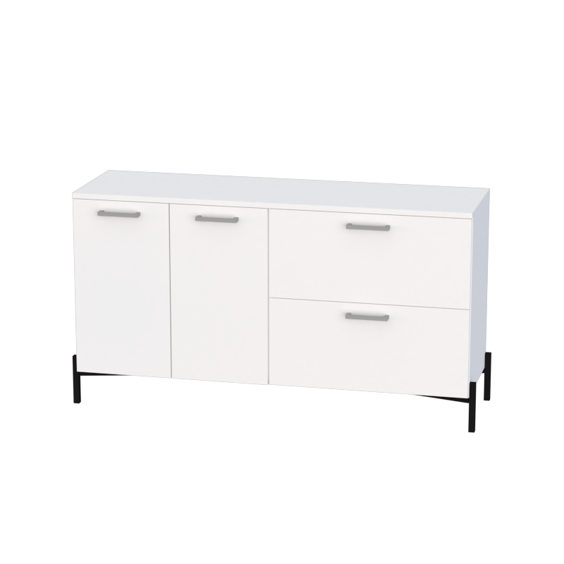 Сервисная тумба с двумя функциональными зонами создает практичное решение для организации офисного пространства. Левая секция с двумя дверцами из ЛДСП обеспечивает удобное хранение объемных предметов, а правая часть с двумя выдвижными ящиками идеальна для систематизации документов и канцелярских принадлежностей.