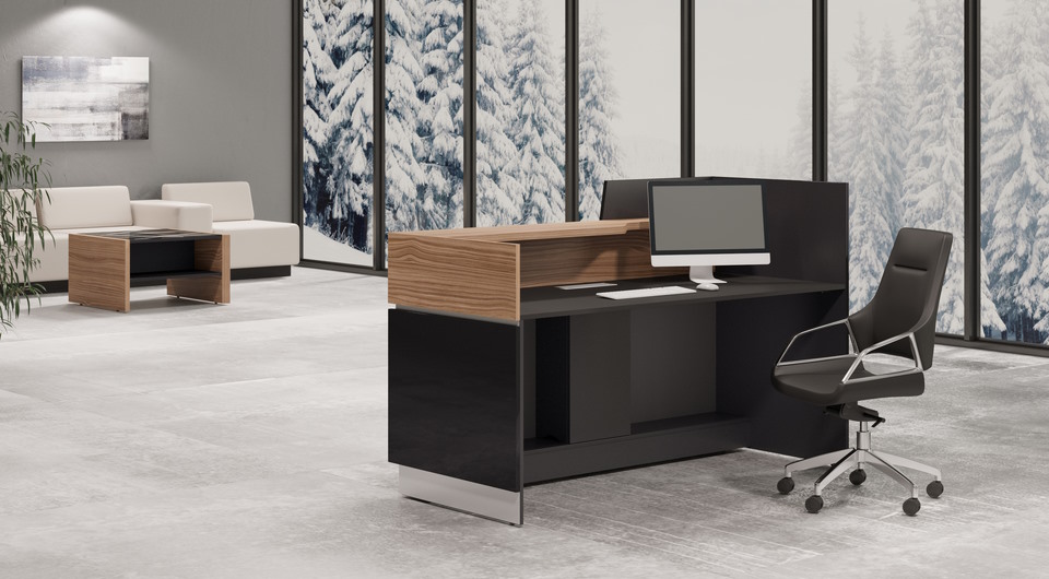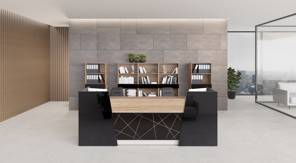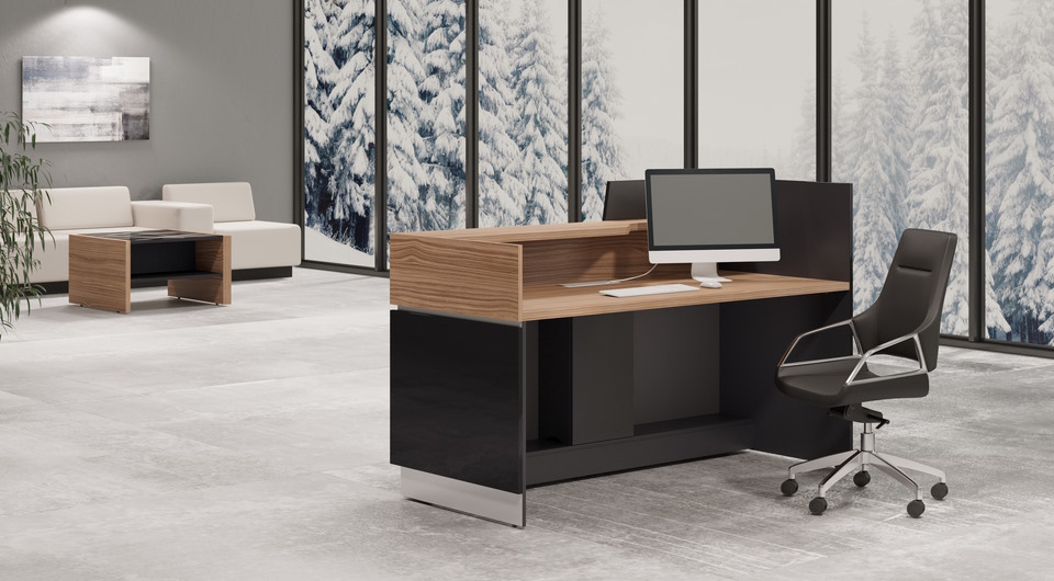 Благодаря лаконичному дизайну и универсальной цветовой гамме стойки Trapezio органично вписываются в пространство бизнес-центров, офисов и гостиниц, гармонично сочетаясь с мебелью руководителя и создавая целостный интерьер.