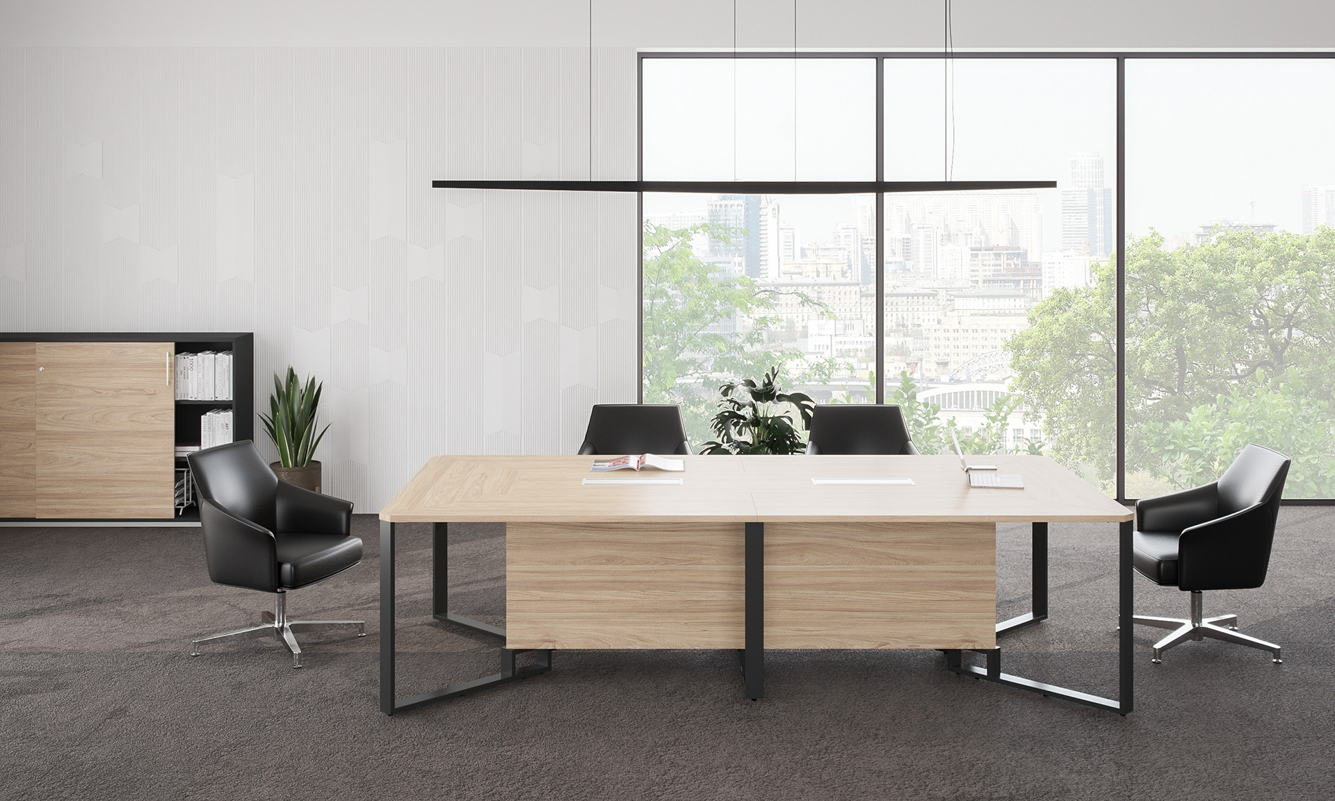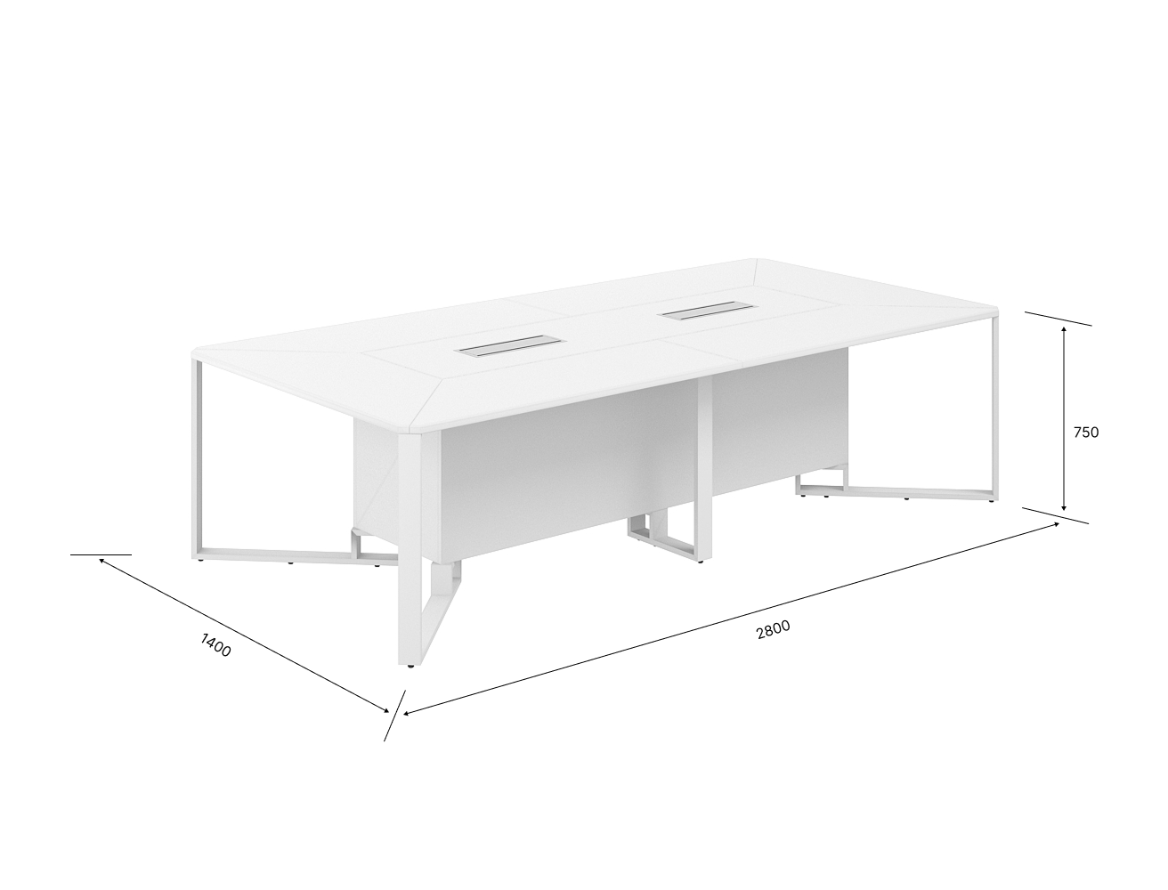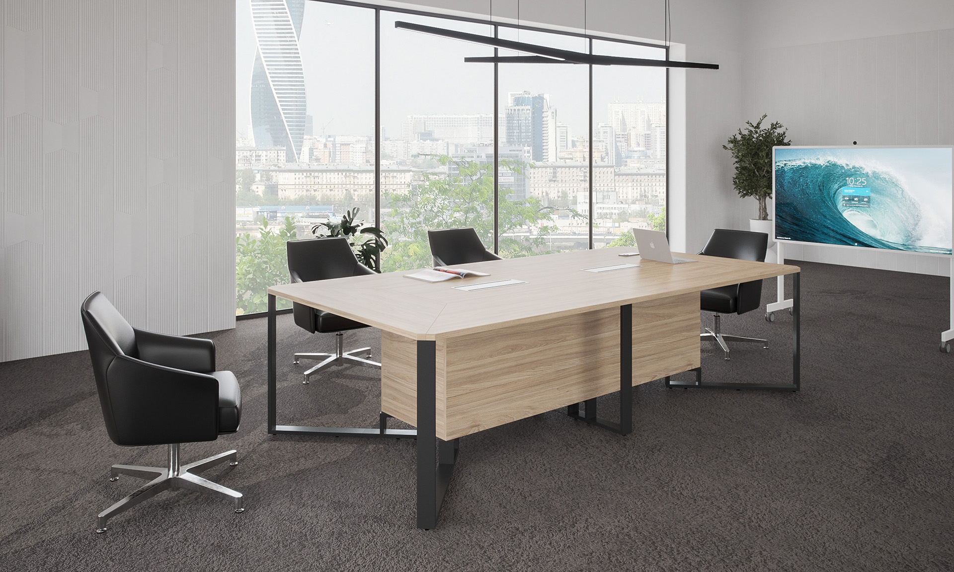 Серия столов Event помогает формировать внутри офиса современную удобную среду для делового общения. Модель с размерами 2400x1200 мм и 2800x1400 мм, сочетающая практичную столешницу из ЛДСП и прочное металлическое основание, идеально подходит для просторных конференц-залов и больших переговорных. Стол предоставляет достаточно пространства для комфортной работы команды, делая каждую встречу продуктивной.