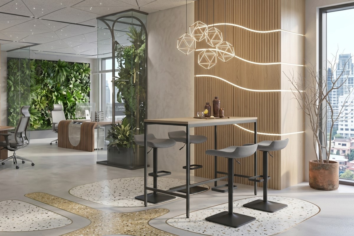 Стол для кофе-пойнтов и работы стоя Lemgo — стильное и функциональное решение для современной офисной зоны отдыха. Высокая конструкция идеально подходит для коротких перерывов и неформального общения сотрудников «на ногах». Модель отличается лаконичным дизайном, прочностью и износостойкостью материалов, что гарантирует долгий срок службы. Компактный и надежный, этот стол гармонично впишется в любой интерьер, помогая создать комфортную атмосферу для перезагрузки в течение рабочего дня.