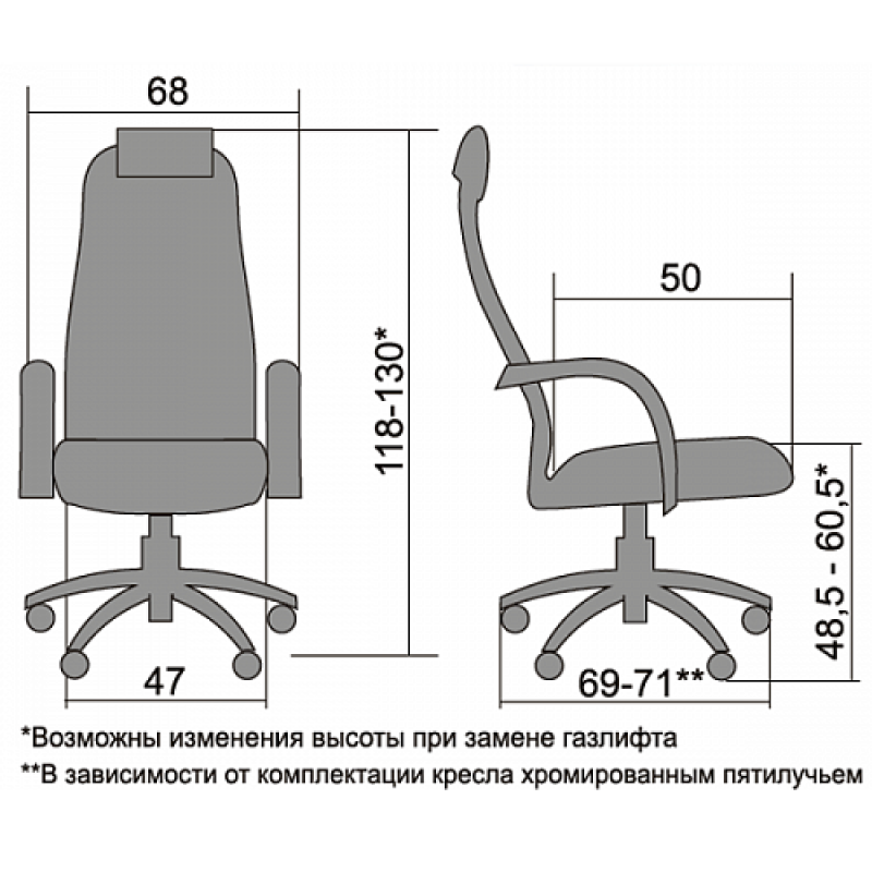 **Высота сиденья в верхнем и нижнем положении может быть изменена, в зависимости от модели применяемого газ-лифта.