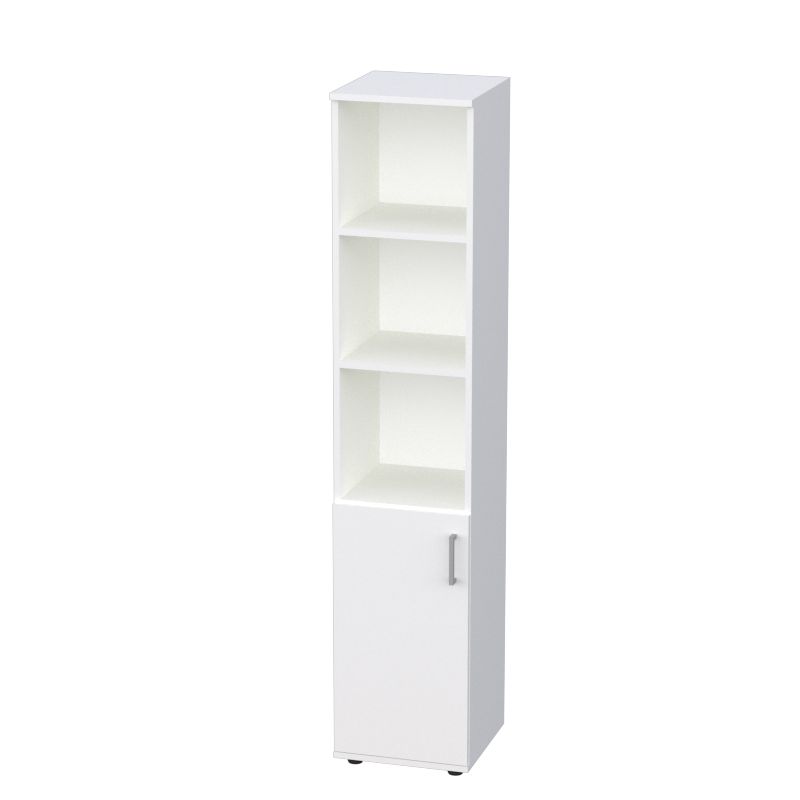 Пенал с глухой дверью внизу и открытыми верхними полками создает сбалансированное решение для офисного хранения. Нижняя секция надежно скрывает содержимое, а открытые полки в верхней части обеспечивают легкий доступ к часто используемым предметам.