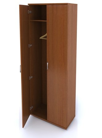 Недорогой вариант шкафа для одежды с полкой и выдвижной штангой. Изготовлен гардероб из ЛДСП 16 мм., кромка ПВХ 1/0,5 мм. Опоры пластиковые, регулируемые. Задняя стенка - ТСН толщиной 3,2 мм в цвет корпуса. Ручки - пластик, цвет "Алюминий".