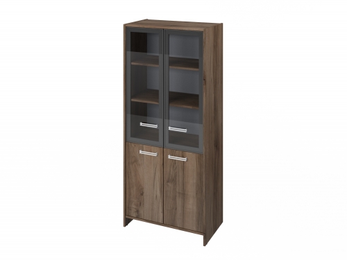 Двери стеклянные, распашные, средние. Фасады в черном алюминиевом профиле. Стекло серое тонированное толщиной 4 мм.