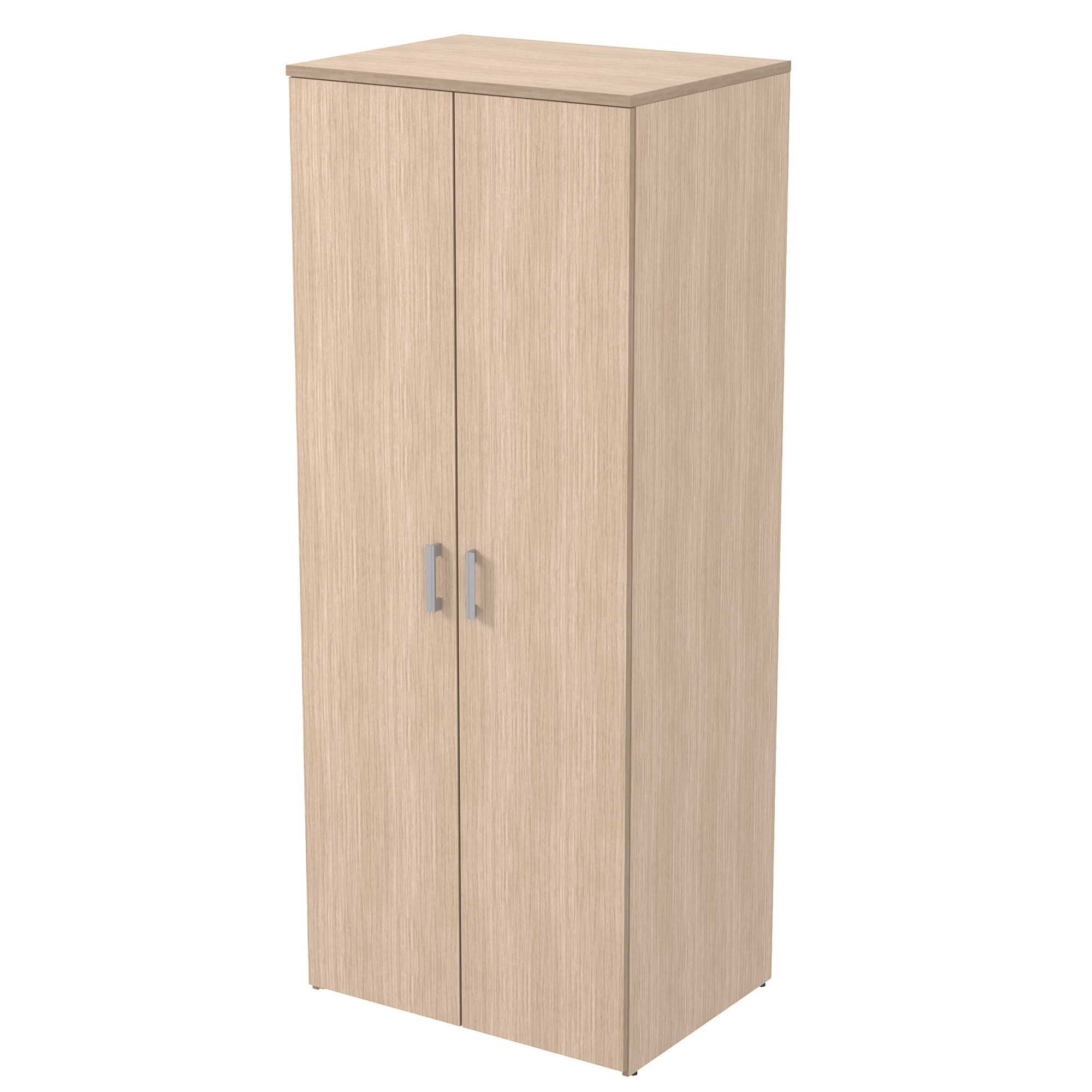 Шкаф изготовлен из качественного ЛДСП с надежной кромкой PVC, что обеспечивает его долговечность и устойчивость к повседневным нагрузкам. Монолитные деревянные фасады эффективно скрывают содержимое, поддерживая атмосферу порядка. Увеличенная глубина делает модель особенно удобной для использования в прихожей или гардеробной зоне офиса.