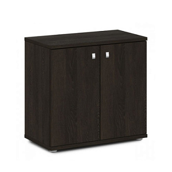 Шкаф низкий, закрытый, с 1 полкой. Состав: VI65 + VI010. VI65: Верхний топ и низ выполнены из плиты толщиной 25 мм. Кромка по переднему торцу верхнего топа и низа - ПВХ 2мм. Кромки остальных срезов - ПВХ 0,4 мм. Боковые стенки выполнены из ЛДСП толщиной 16 мм. Задняя стенка выполнены из ХДФ толщиной 3 мм, с одной стороны облицована серым цветом. Состоит из 2-х частей, соединенных пластмассовой планкой. Стеллаж имеет 1 полку и 2 пролета, полка расположена на расстоянии 341 мм от верхнего и от нижнего топа. Полка опорная (горизонталь), толщина плиты 25 мм, ширина - 786 мм, глубина - 420 мм. В качестве крепежной фурнитуры используются эксцентриковые стяжки, позволяющие многократно собирать и разбирать мебель без потери жесткости соединений и исключающие отверстия на лицевых поверхностях. Эксцентрики закрываются заглушками в цвет плиты. Стеллаж оборудован четырьмя регулируемыми по высоте пластиковыми опорами серого цвета, диаметром 50 мм, высотой 27 мм, позволяющими компенсировать неровности пола. Регулировка ±10 мм. Материал опор - пластик серый. V-10: Двери распашные, низкие. Фасады выполнены из плиты толщиной 16 мм, высота - 702 мм, крепление на 2-х петлях. Ручка – кнопка с поднимающимся язычком, размером 15 мм х 30 мм. Материал - цинковое литье. Цвет - "Хром матовый".