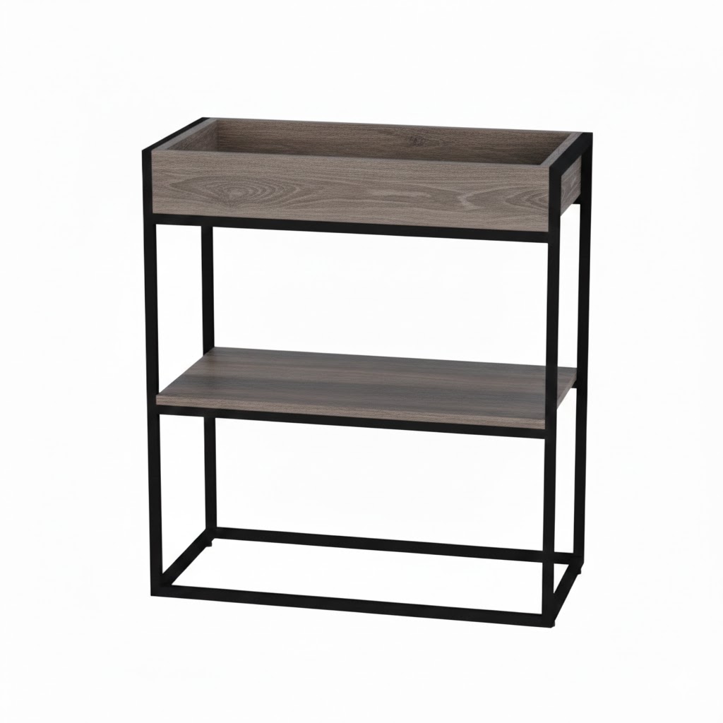 Металлический каркас обеспечивает прочность и устойчивость конструкции. Полки и кашпо выполнены из ЛДСП, что гарантирует единство стиля и долговечность. Растения в верхней части не только украшают интерьер, но и способствуют созданию комфортной рабочей атмосферы.