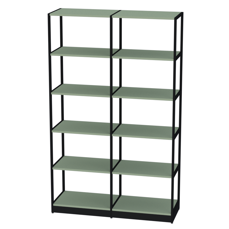 Высокий стеллаж на металлокаркасе с полками из ЛДСП и цоколем в нижней части создает многофункциональную систему хранения для офиса. Шесть полок обеспечивают пространство для документов, папок, канцелярских принадлежностей и других рабочих материалов, позволяя организовать пространство с максимальной эффективностью.