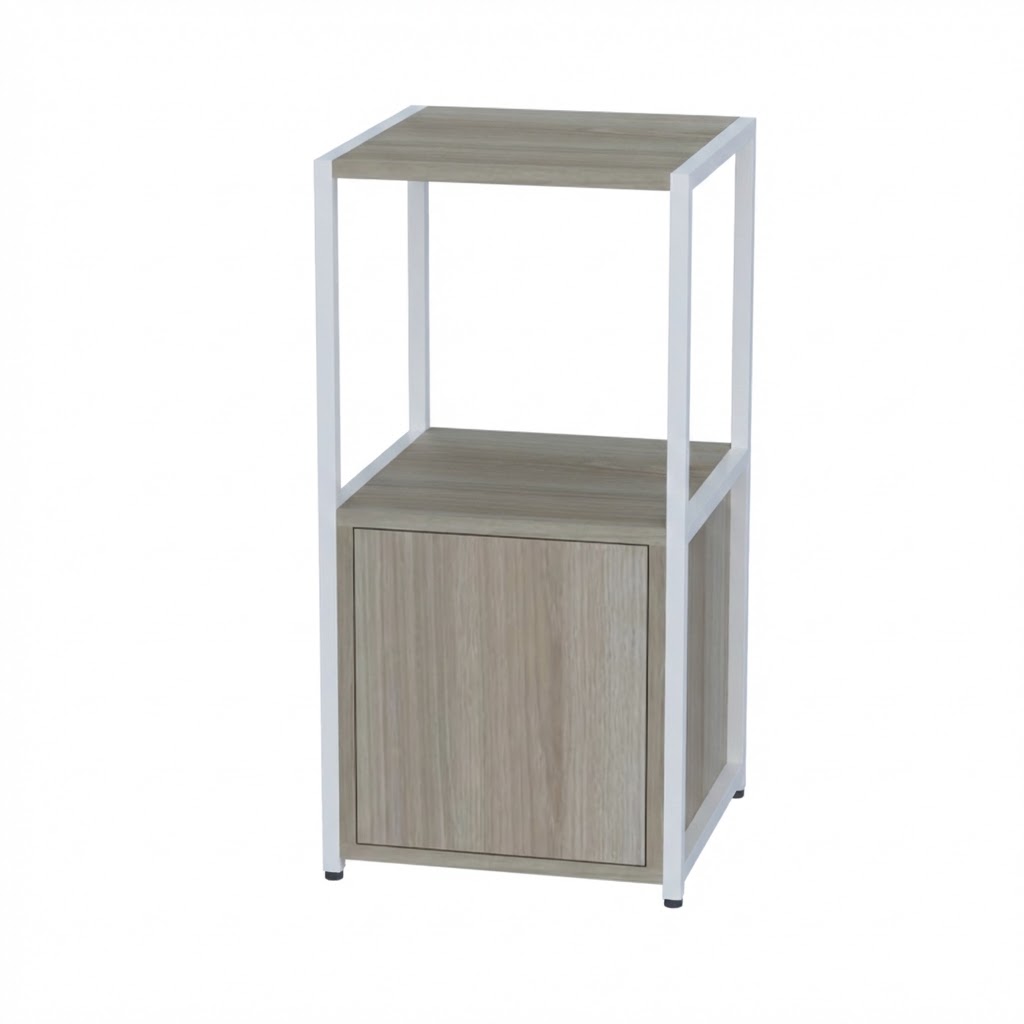 Стеллаж металлический компактный с фасадом и системой открывания нажатием создает эргономичное решение для малогабаритных офисных пространств. Верхняя открытая полка предназначена для часто используемых предметов, а нижний шкафчик со скрытым механизмом открывания надежно хранит документы и ценные вещи.