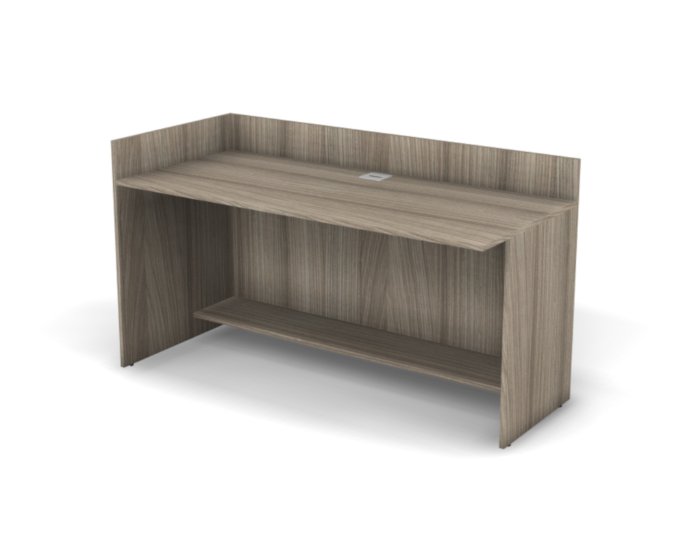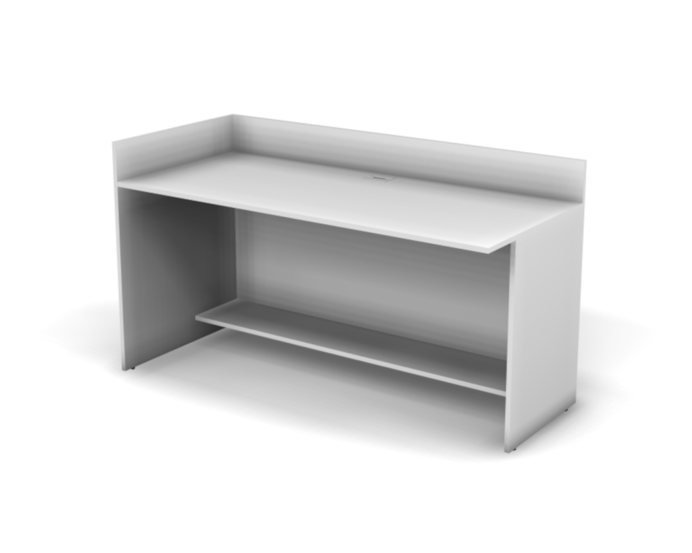 Конструкция из прочного ДСП толщиной 18 мм с противоударной кромкой ABS гарантирует долговечность эксплуатации. Стол гармонично интегрируется в общую композицию ресепшн-зоны, предоставляя дополнительную поверхность для работы с документами или размещения оборудования.