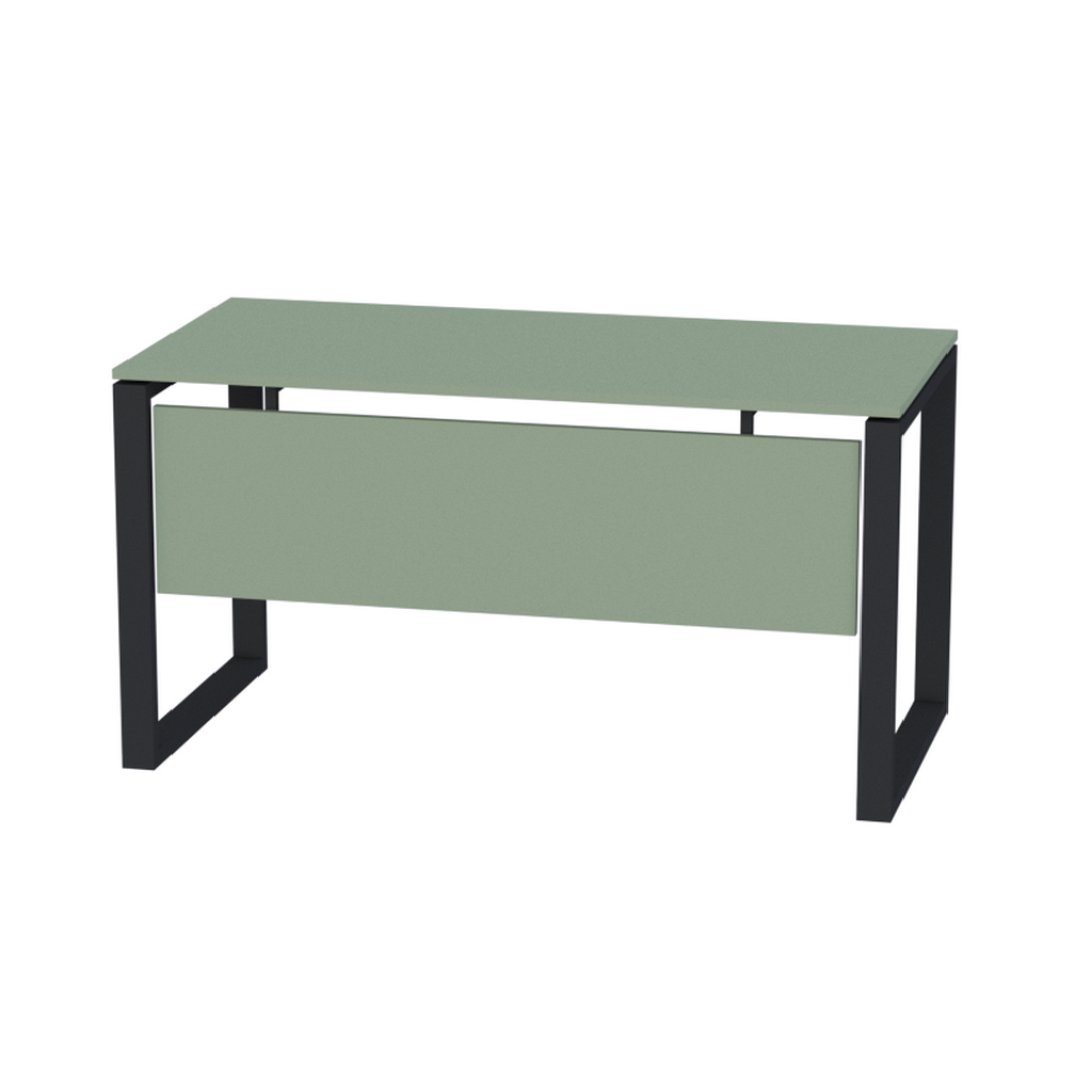 Стол прямой на О-образных металлических опорах с защитным экраном создает эргономичное рабочее место для современного офиса. Столешница размером предоставляет достаточно пространства для работы с документами и техникой, а подвесной экран эффективно скрывает провода, поддерживая аккуратный вид.
