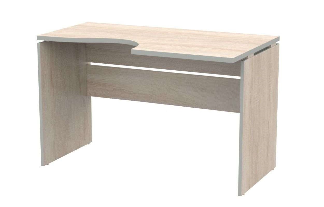 В столе одно отверстие под кабель-канал в комплекте с заглушкой. Изготовлен из ЛДСП 25/18 мм., кромка ПВХ 2 и 1 мм. Проставка в столе из МДФ - 16 мм, цвет - металлик. Регулируемые опоры.
