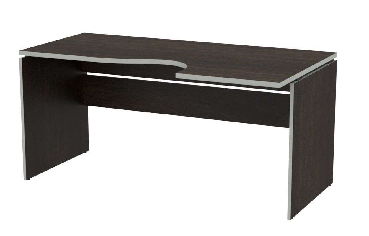 В столе одно отверстие под кабель-канал в комплекте с заглушкой. Изготовлен из ЛДСП 25/18 мм., кромка ПВХ 2 и 1 мм. Проставка в столе из МДФ - 16 мм, цвет - металлик. Регулируемые опоры.