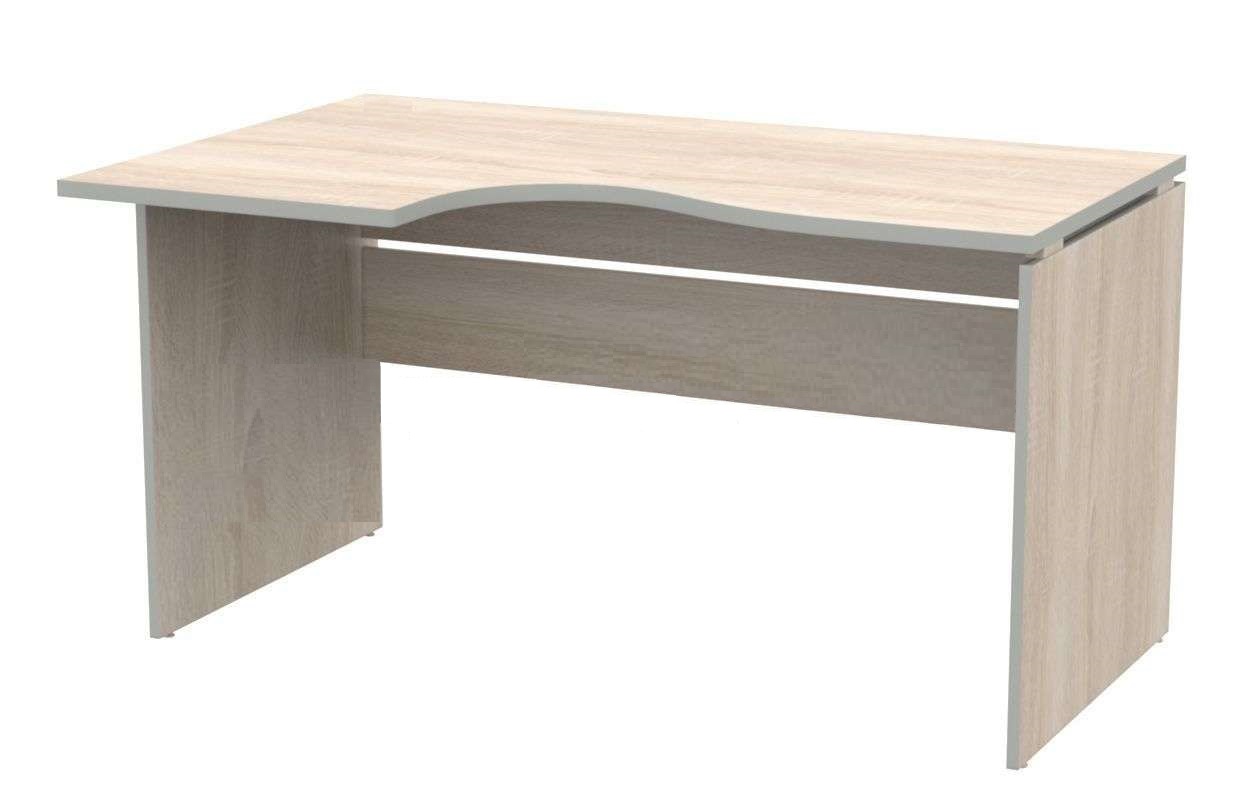 В столе одно отверстие под кабель-канал в комплекте с заглушкой. Изготовлен из ЛДСП 25/18 мм., кромка ПВХ 2 и 1 мм. Проставка в столе из МДФ - 16 мм, цвет - металлик. Регулируемые опоры.