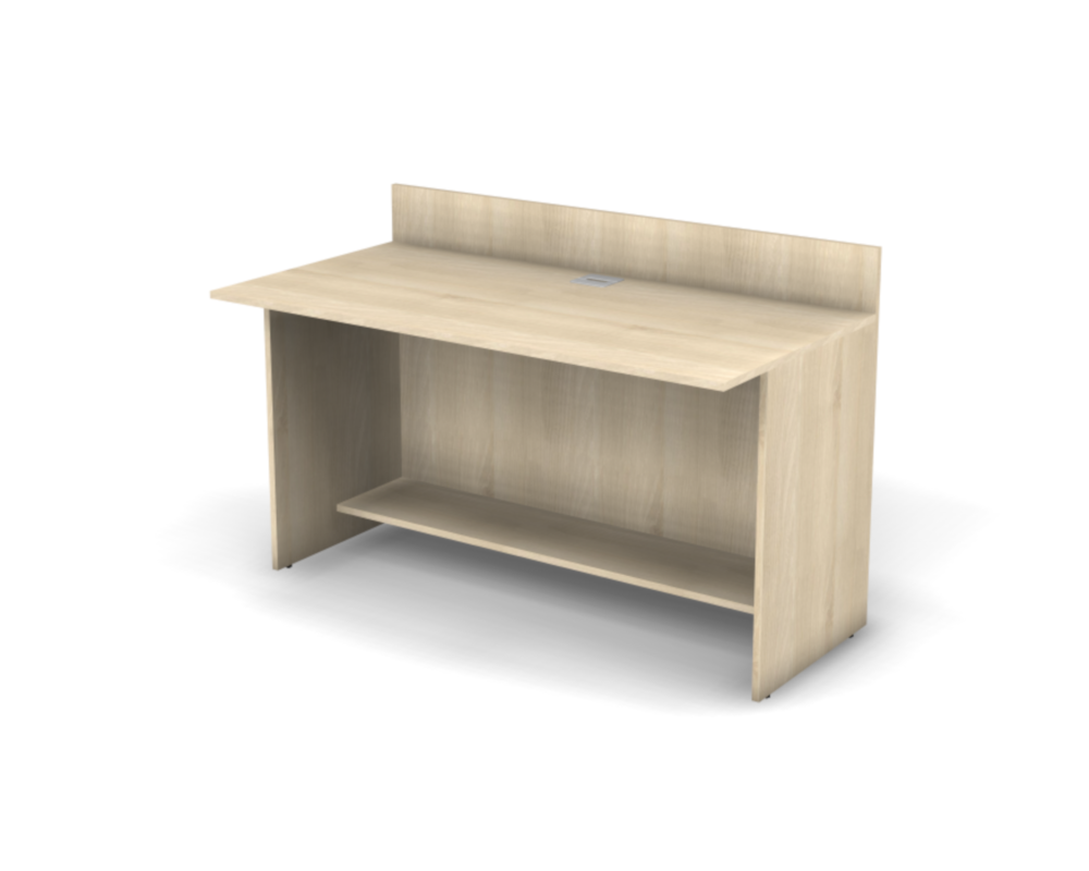 Стойка выполнена из прочного ДСП толщиной 18 мм с противоударной кромкой ABS. Просторная столешница размером 1380×700 мм предоставляет достаточно места для работы с документами и размещения необходимого оборудования. Надежная соединительная фурнитура гарантирует устойчивость конструкции.
