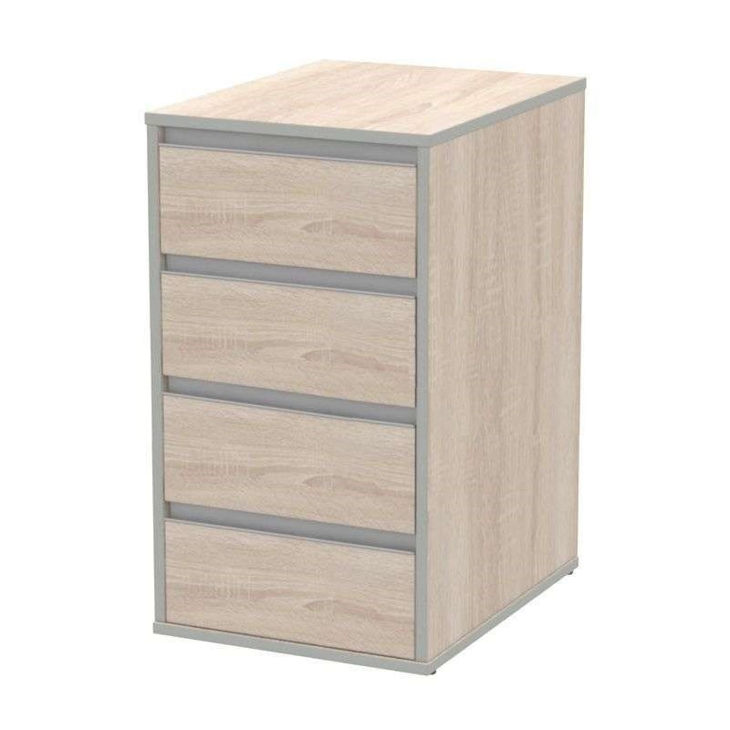 Используется со столами по краю стола на 550 мм. Изготовлена тумба из ЛДСП 25/18 мм., кромка ПВХ 2 и 1 мм. Направляющие в тумбах - роликовые. Ручки - врезные металлические, цвет "алюминий". Регулируемые опоры.