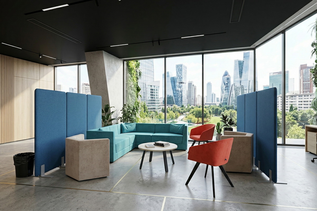Перегородки AKUSTIX могут быть выполнены в различных цветовых решениях. Цвета помогут подчеркнуть корпоративный стиль в офисном интерьере. С помощью ярких цветов можно создать менее формальный, свободный интерьер.